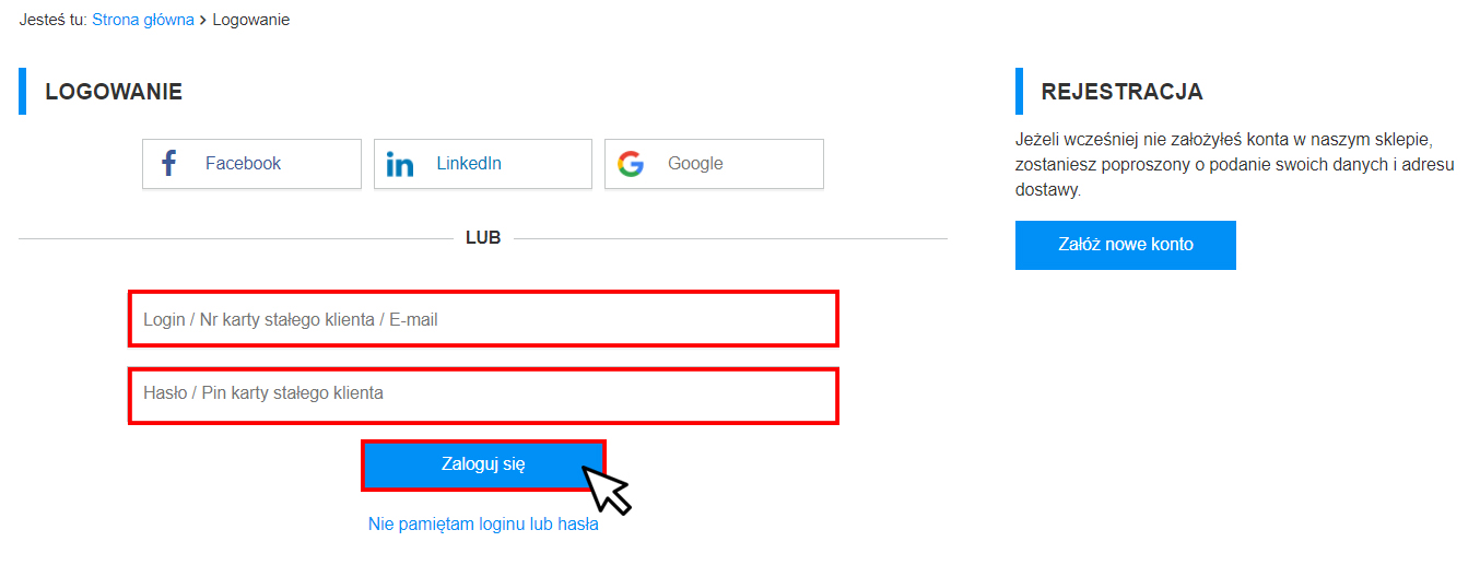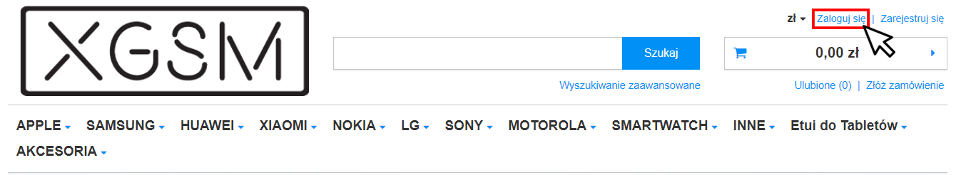 Pierwszym krokiem jest zalogowanie się w naszym sklepie internetowym. Aby to zrobić kliknij przycisk "ZALOGUJ SIĘ".