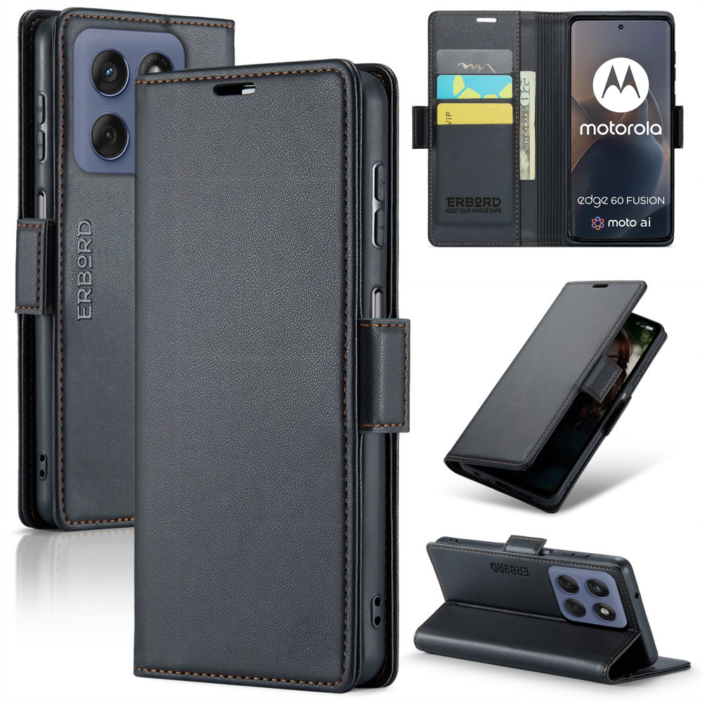 Etui do Motorola Edge 60 / 60 Fusion, ERBORD Glossy Litchi, portfel z klapką, czarne