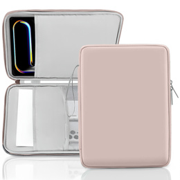 Ultralekkie etui na laptopa 13" z nadrukiem liści i dodatkową saszetką - beżowe