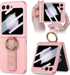 Etui GKK do Samsung Galaxy Z Flip7 FE / Z Flip6, Ring Holder, z paskiem, różowe