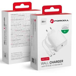 Ładowarka Sieciowa Forcell ze złączem USB typ C i kablem typ C - 3A 25W z funkcją ładowania PD i QC 4.0