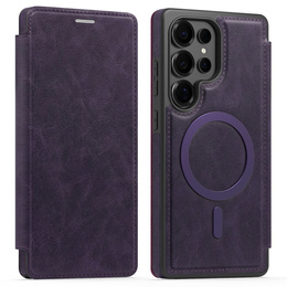 Skórzane etui do Samsung Galaxy S25 Ultra z MagSafe i blokadą RFID – Ciemnofioletowe