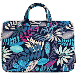 Ultralekkie etui na laptopa 13" z nadrukiem liści i dodatkową saszetką - niebieskie