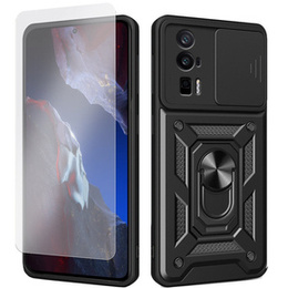 Zestaw Etui pancerne do Xiaomi Poco F5 Pro, Nox Camera Slide, czarne + Szkło
