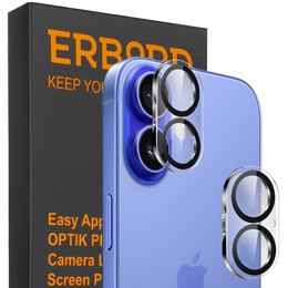 Szkło na aparat do iPhone 16 / 16 Plus, czarna metalowa nakładka ERBORD