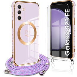 Etui do Samsung Galaxy S23 FE, Electro Heart MagSafe, fioletowe + Szkło na ekran + Smycz