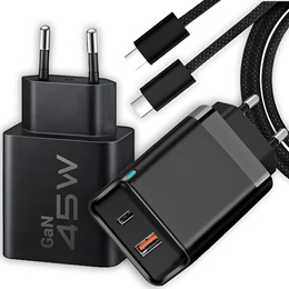 Zestaw Ładowarka sieciowa GaN, PD QC 45W 3A, USB-C USB-A + kabel 60W