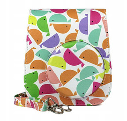 Etui do Fujifilm Instax Mini 11, skórzany pokrowiec z paskiem, kolorowe wieloryby