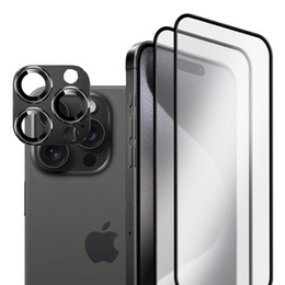 2x Szkło + szybka na aparat czarna do iPhone 15 Pro, ERBORD Hartowane 3D