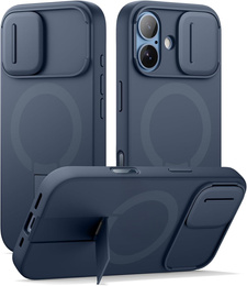 Etui do iPhone 17, do MagSafe, z podstawką, przezroczyste z granatowymi akcentami