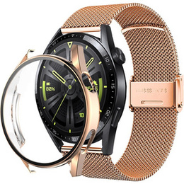 ( ilość produktów: 1310 )Bransoleta Milanese + Etui z osłoną na ekran do Huawei Watch GT 3 46mm, Różowe złoto