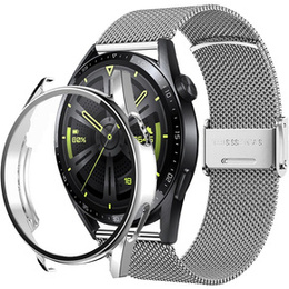 Bransoleta Milanese + Etui z osłoną na ekran do Huawei Watch GT 3 46mm, Srebrny