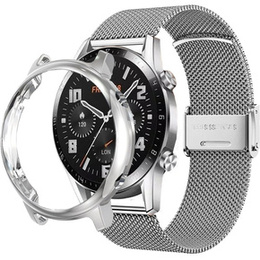 Bransoleta Milanese + Etui z osłoną na ekran do Huawei Watch GT 2 46mm, Srebrny