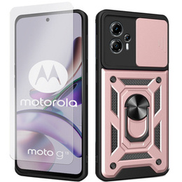 Zestaw Etui do Motorola Moto G13 / G23 pancerne, z ochroną aparatu i ringiem, różowe rose gold + szkło