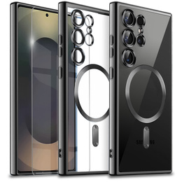 Etui pancerne do Samsung Galaxy S25 Ultra, R-JUST, ze szkłem i podstawką, czarne