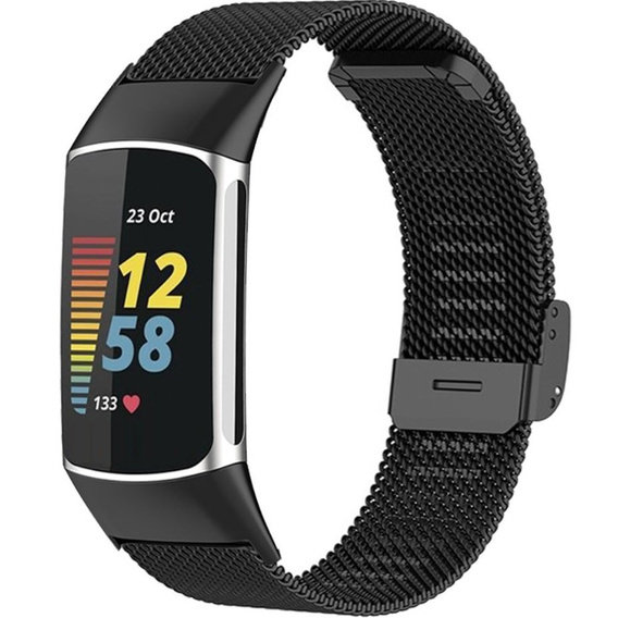 Niezwykle gustowna i elegancka bransoleta do zegarków Fitbit Charge 5 w stylu siatki mediolańskiej.