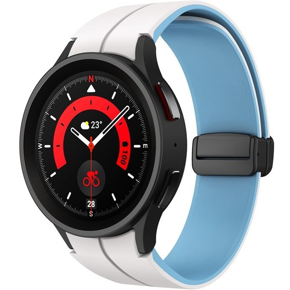 Opinie o Pasek Silikonowy do Samsung Galaxy Watch 4/5/6/7/FE 40/42/43/44/45/46/47mm, Biały / Niebieski