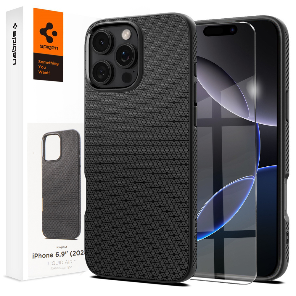 - 1 x Etui Spigen do iPhone 16 Pro Max, Liquid Air, czarne + Szkło Hartowane 9H