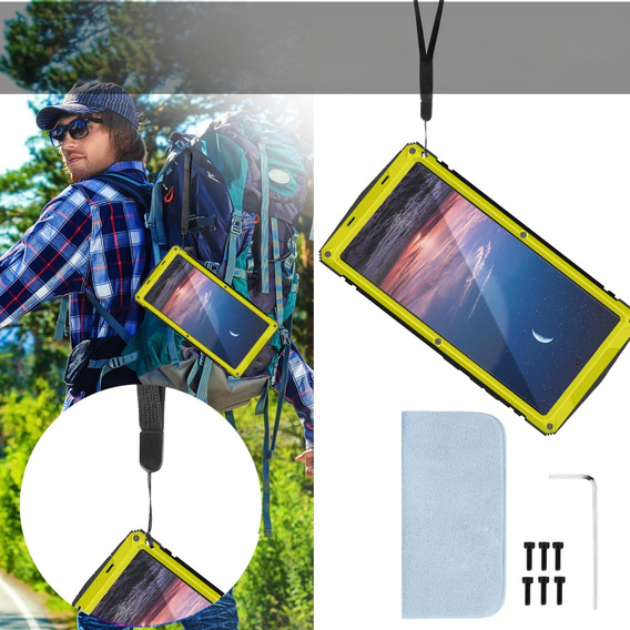 Hybrydowa konstrukcja z metalu, TPU i hartowanego szkła zapewnia pełną ochronę przed upadkami, wstrząsami i zabrudzeniami.