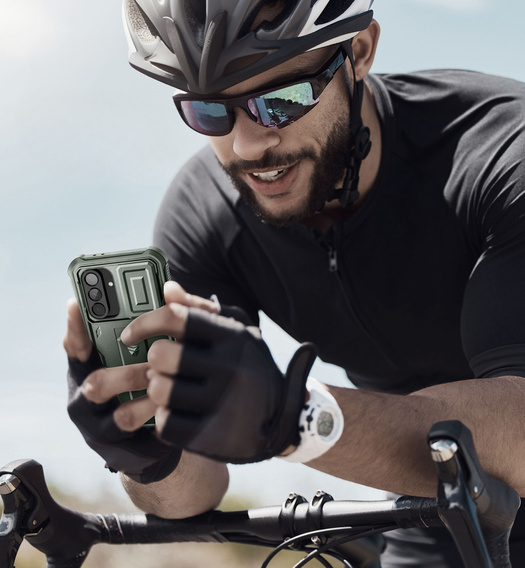 Etui pancerne do Samsung Galaxy A56, Dexnor Kickstand Cam Protector, zielone jest jednym z najbardziej chroniących i wytrzymałych produktów w całym naszym asortymencie. Pokrowiec składa się z plecków posiadających wbudowaną podstawkę dla wygodniejszego oglądania treści na ekranie smartfona a także zapewniającą pewniejszy chwyt gdyż można jej używać jako uchwyt na palec. Ramka na przód urządzenia wykonana została z mieszanki miękkiego tworzywa termoplastycznego.Posiada wbudowaną folię, która dodatkowo chroni ekran przed zarysowaniami i uszkodzeniami.Te połączenie zadba o bezpieczeństwo Twojego telefonu nawet podczas ekstremalnych sytuacji.