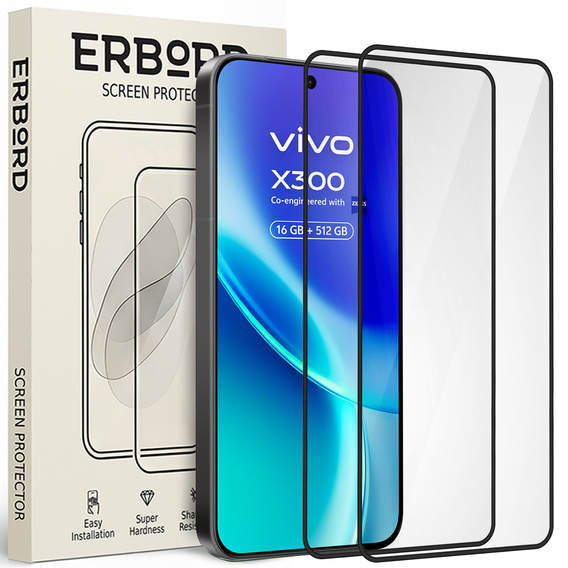 - Komplet 2x szkło hartowane ERBORD 3D do Vivo X300.