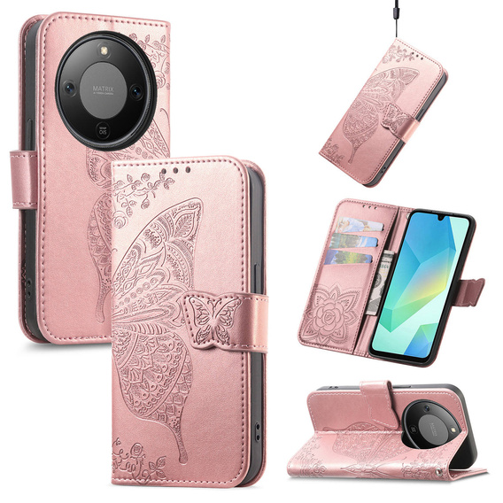 Etui z klapką do Honor Magic 8 Lite, Butterfly, różowe
