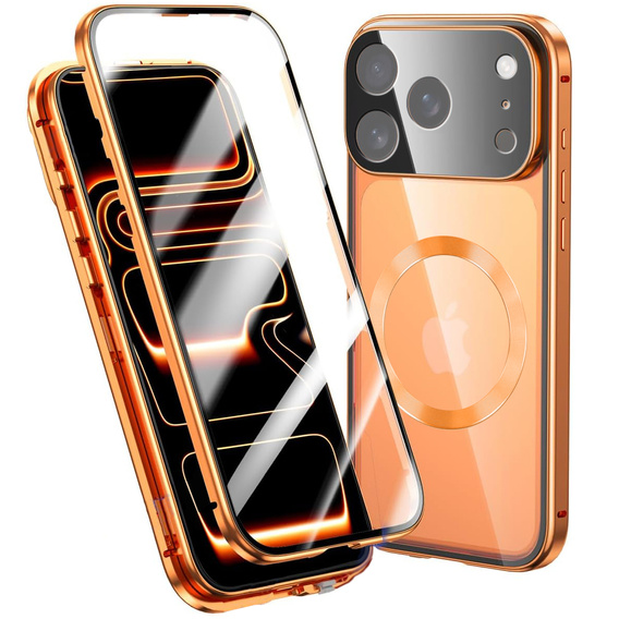 Etui do iPhone 17 Pro Max, Magnetic Dual Glass, do MagSafe, pomarańczowe
