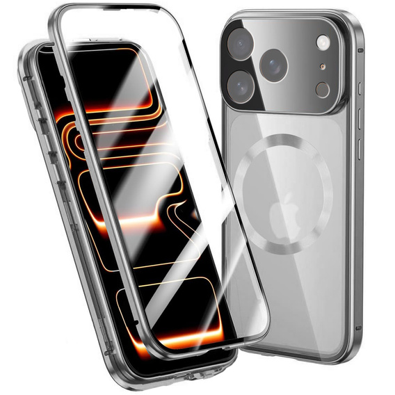 Etui do iPhone 17 Pro, Magnetic Dual Glass, do MagSafe, srebrne