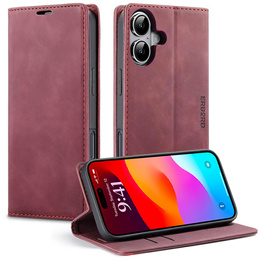 Etui do iPhone 15, ERBORD Vintage portfel z klapką, czerwone